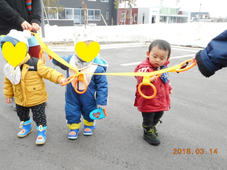 保育士の「いちに、いちに、」の掛け声にあわせるようにてくてく‥てくてく‥