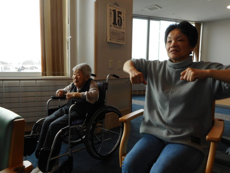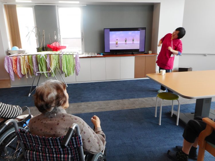そして午後は、機能訓練士の元、テレビを見ながら体操を行っております。