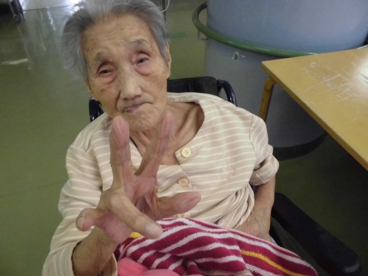 カメラの前でピースサインをして下さいました