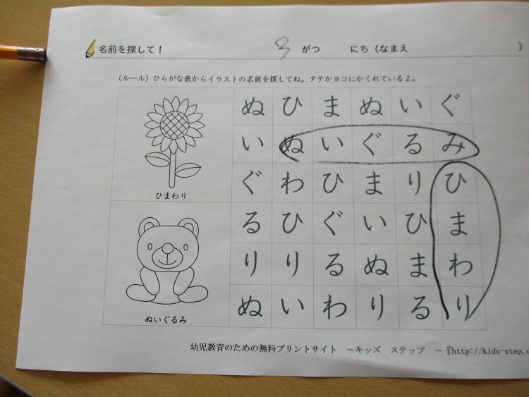 N様、脳トレーニングの様子です。ひらがな表から、イラストの名前を探します☆