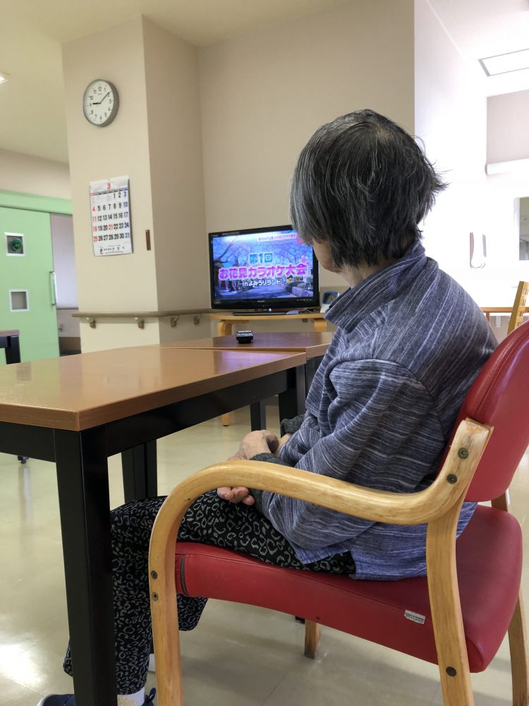 ホールにてゆったりとTVをみているO様を撮らせていただきました。