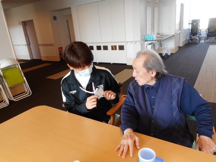 2階のお客様のお茶会の時間、新人職員がお客様から名前を聞かれていました。