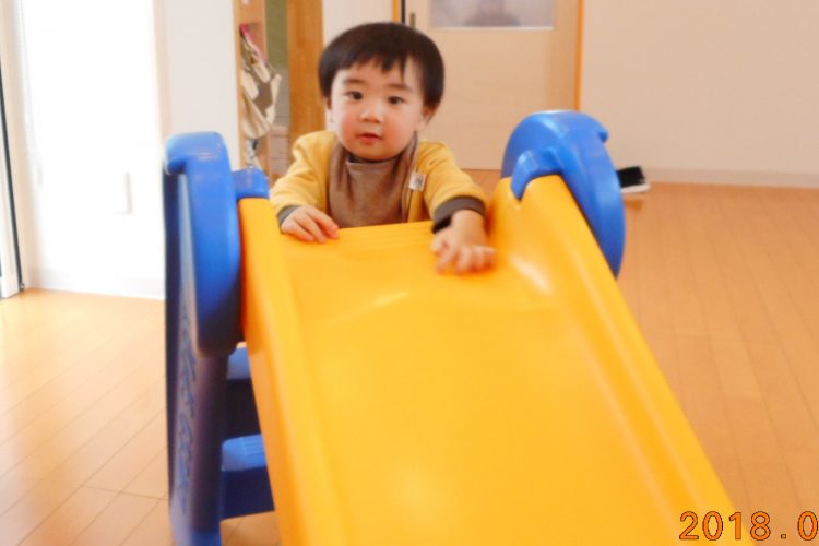 すべり台をのぼってご機嫌です!!