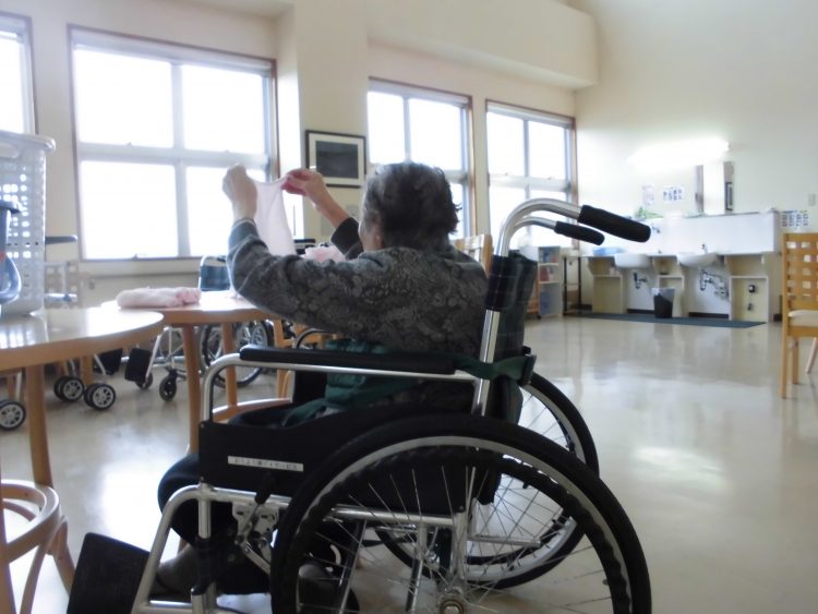 散歩を終えて、S様が「何か仕事ないか」と話す様子あった為、職員と一緒におしぼりたたみを行って頂きました。10分程で畳み終えて、その後エプロンたたみも行って頂きました。これからも元気に過ごされるように介助を行って行く必要があります。(ショートK.M)