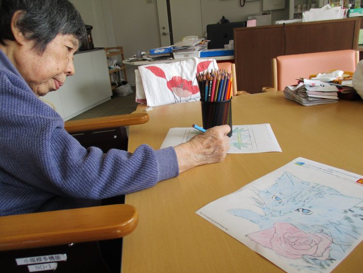 花を見終わった後S様は「さっきの続きでもするが^-^」とぬり絵を始めました。「またぬり絵が増えたな」と話されたので展示させていただきます!^0^!!