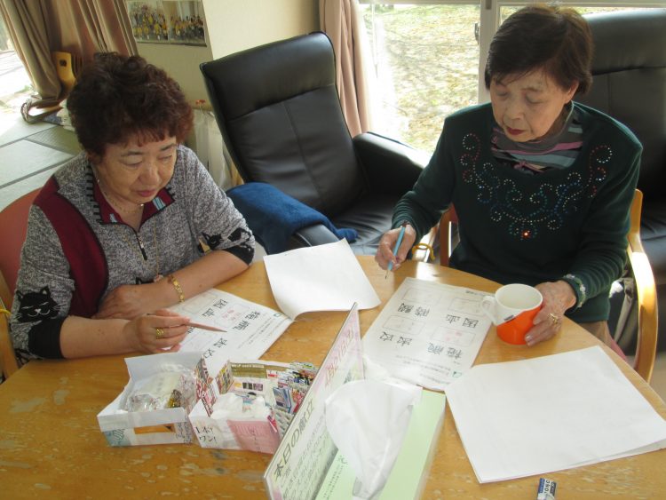 午後からは脳トレを行いました。漢字のちょっと難しい問題と都道府県に関わる問題を行いました。