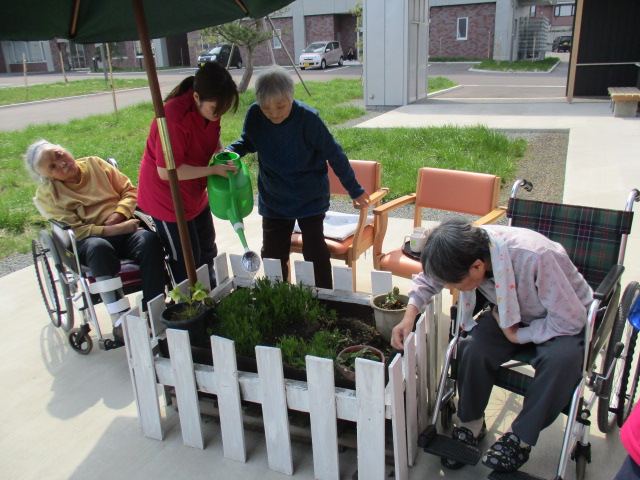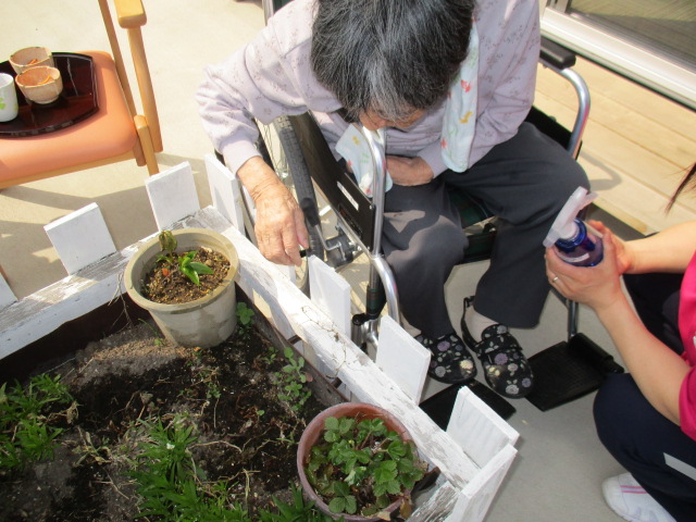 花が大好きなY様は花壇の花に水をかけながら「はなっこ咲いてきてらな」と花のお話しを色々してくださり笑顔が見られております。