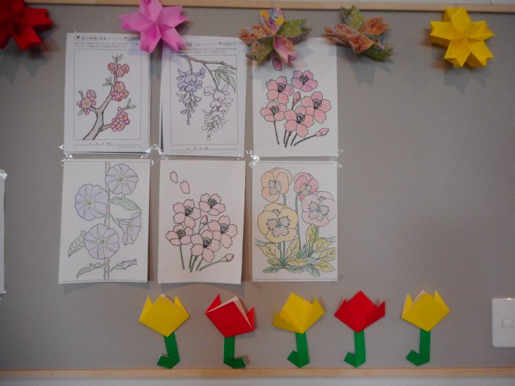 T様「外の桜も咲いたなー」と話されながら、塗り絵の桜を咲かせてくれています。もうすぐ満開です♪