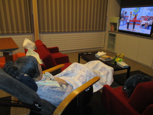 就寝準備をされ「テレビ見るかな」 リラックスした様子で過ごされておりました。