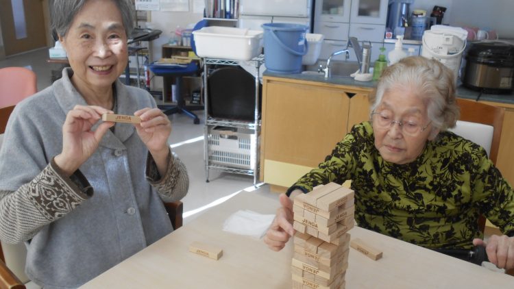 今日のレクは、久しぶりにジェンガを行ないました。