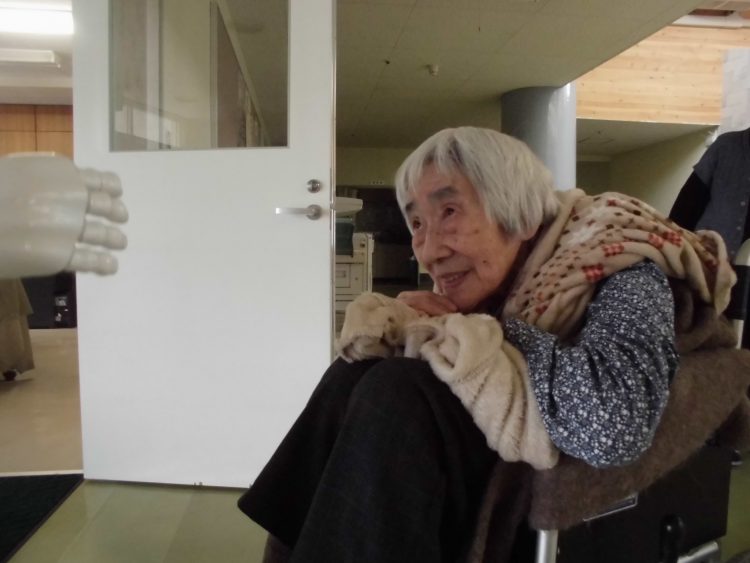 S様、ペッパー君に「おはようございます」とあいさつされております。