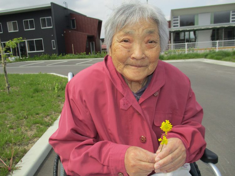 Y様は「外さいぐ!!ジャンパー着れば大丈夫だね~」と話され職員と一緒に花壇へ。「この鉢、なんだば~?イチゴだな?あ~れ~^0^めんこいの~」とY様。「外は気持ちがいいな~、みんなこいへ^-^」と誘っておりました。