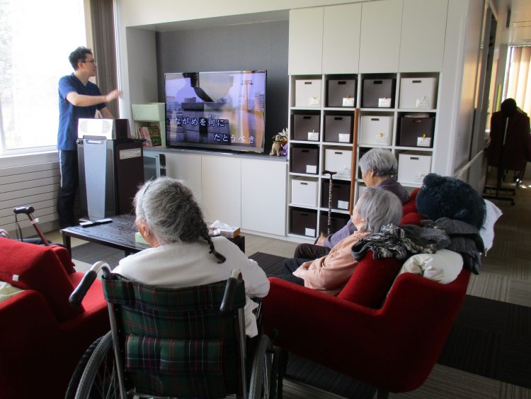 外から戻り今度は皆様と一緒に合唱です♪童謡から歌謡曲まで歌っていました^0^またいっぱい歌を歌い外へお散歩に行きましょうね☆^0^☆