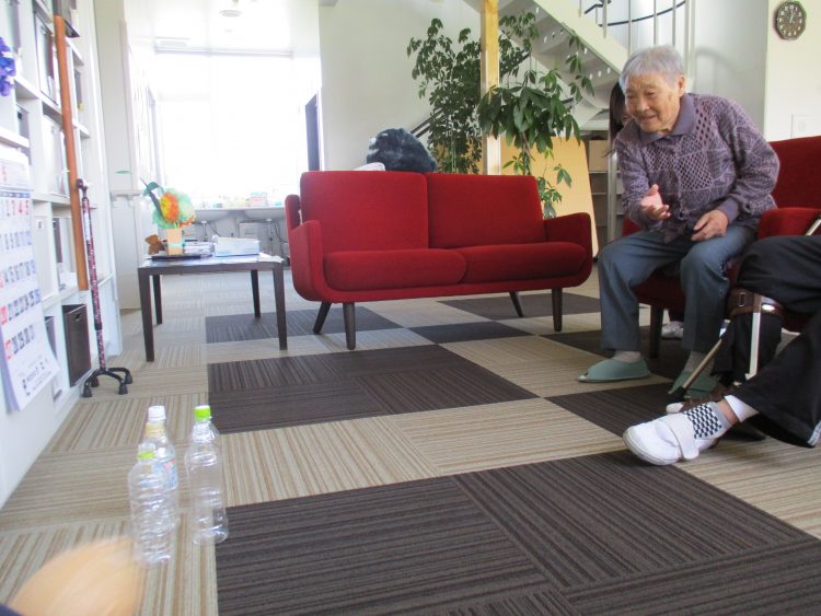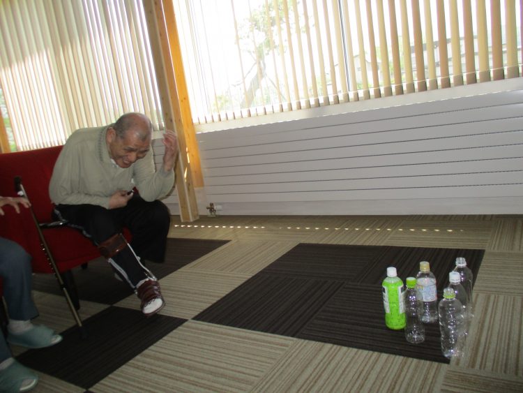 次はY様… 一投目から力強い球で破壊力抜群でストライクを決めておりました♪「どんだ?いぐいったべ~^-^?」と笑顔で話され「もう一回やるが!!」とS様と挑戦!!職員よりも皆様上手で「まだまだ負けね~や~^0^また今度やるべし♪」と約束されておりました。これからも皆様と楽しく体を動かしていきたいとおもいます!^0^!