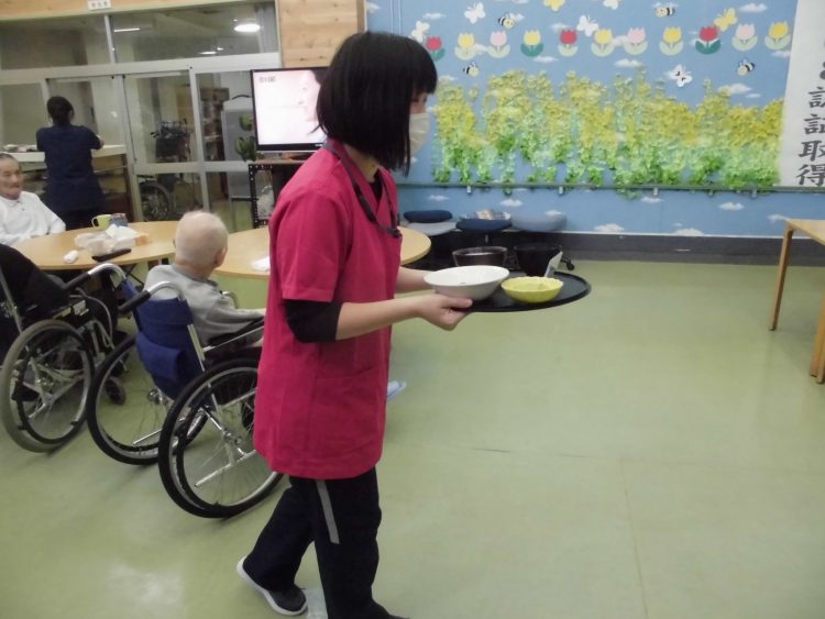 その後それぞれのお客様に適切な食事を提供できるよう説明を受け、実際に配膳してみました。初めてだったので少し緊張しました。