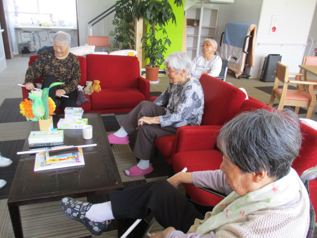 今日は、暑さに負けず元気に過ごせる様、介護予防と機能回復につながる様ストレッチをして身体をほぐしました。