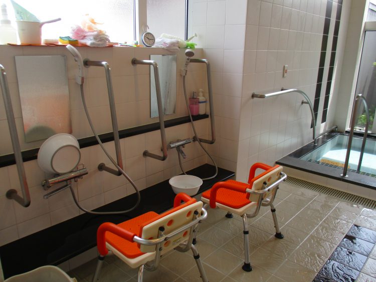 こちらは、機械浴です☆寝たきりの方や、座位を取る事が困難な利用者様が入浴出来ます。また、機械浴を利用することによって、お湯に足を伸ばし浸かる事が出来ます。