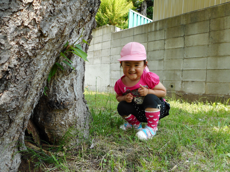 木陰に隠れ、ひょっこり顔をだすSくん(^^)