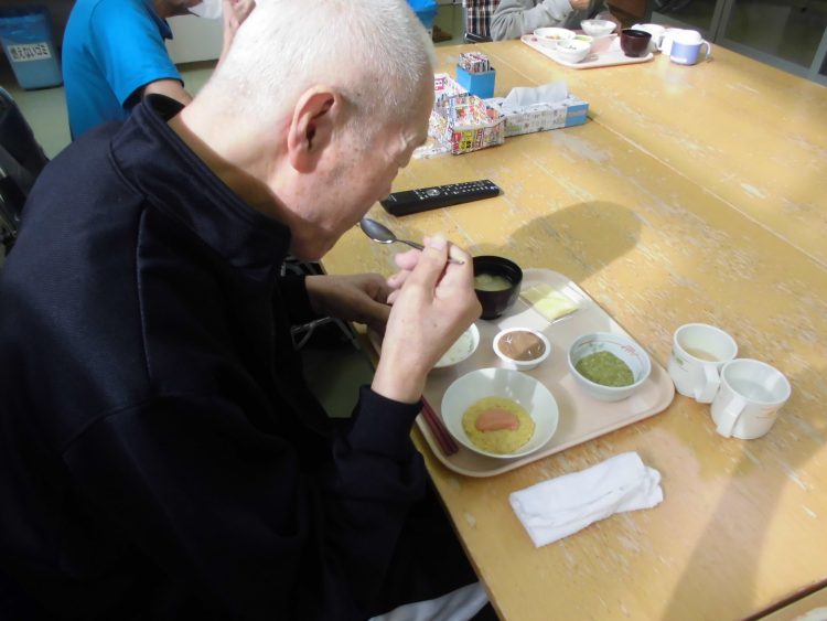 T様は、朝起きると、自力にて整容を行いホールにて朝食まで