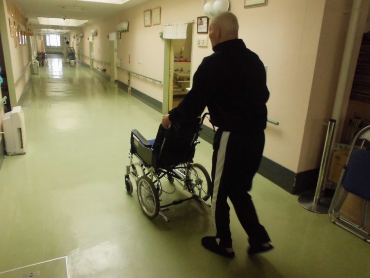 今日は、入浴日だった為、職員と共に脱衣所まで移動します。