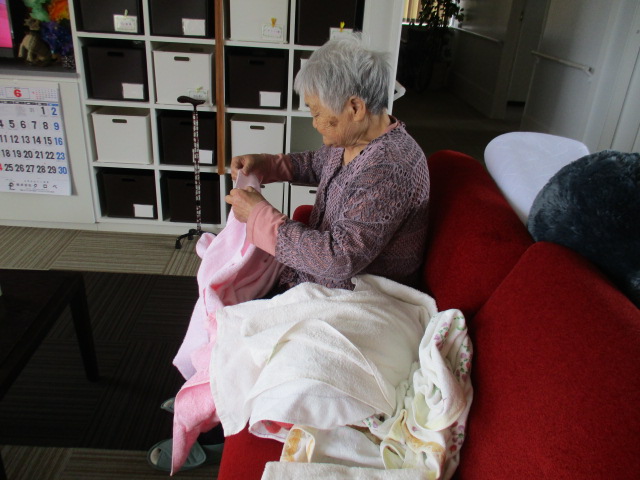 「何かやる事ないの?」と、あっと言う間にとてもきれいにタオルをたたんでくださいました。