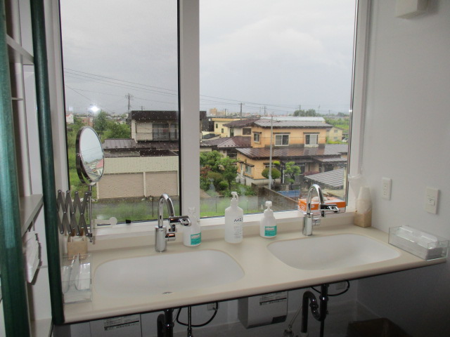 開放的な洗面所で市街地を眺めながら、イブニングケア、モーニングケアが行えます。持参のお化粧品でゆっくりお手入れされるのもいいですね♪