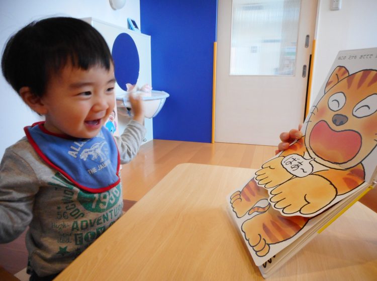 今日はみんなの大好きなしかけ絵本を見ながら「いないいないばぁ」遊びをしました(*^_^*)