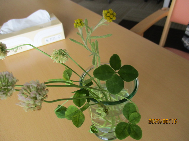 小規模の庭先でみつけた「四葉のクローバー」お客様が元気で、毎日楽しい時間を過ごせますように*^-^*
