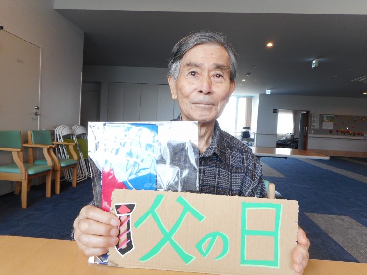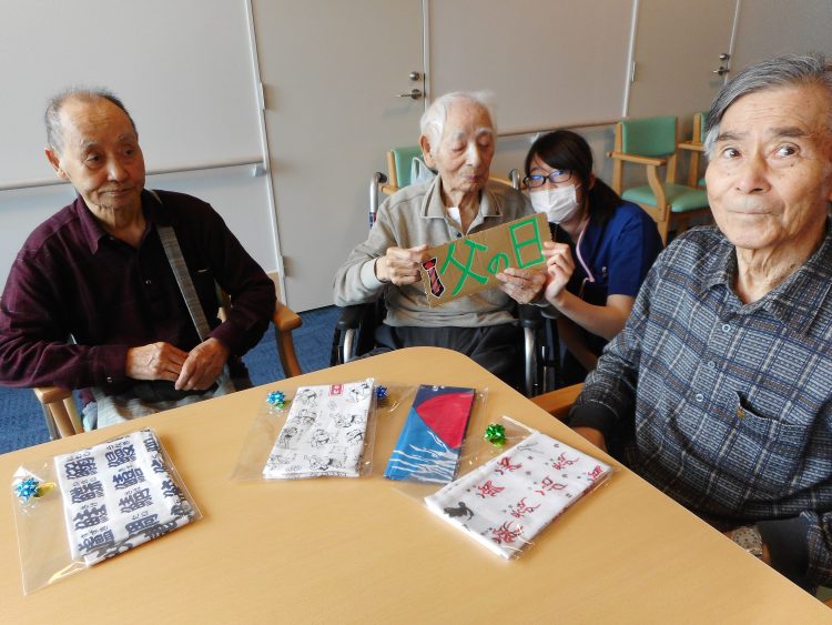 お客様にも元気でいて欲しい気持ちを込めてささやかですが、手ぬぐいのプレゼントを職員より贈らせてもらいました。