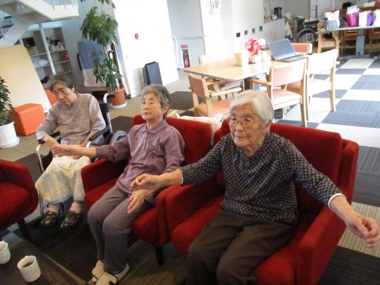 皆さんで元気よく、体を動かしております。