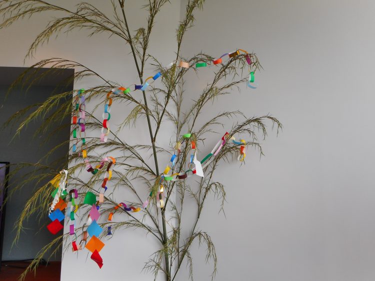 七夕の笹の木が到着しました。飾り付けをして、だんだんと七夕の雰囲気が出てまいりました。