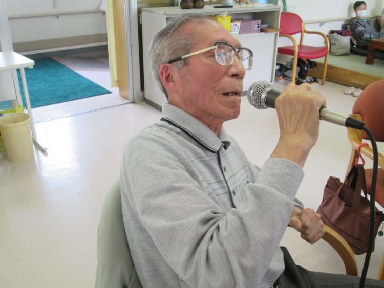 今日はカラオケを行いました。今日のカラオケ参加者が5名ほどしかおらず・・・。人数は少ないですがプラス思考に考え、思う存分歌って頂きました。