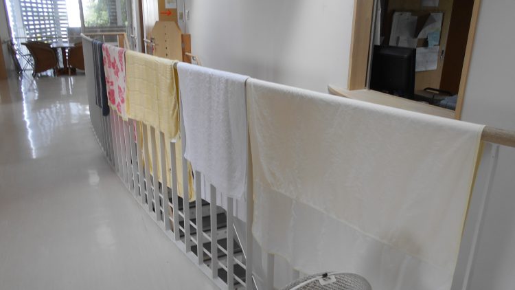 私ども、ベルフラワーの職員も急いで洗濯機を回しております。