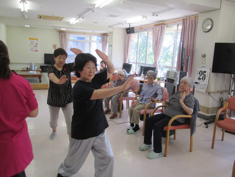 今日は太極拳を行いました。暑い中での太極拳となりましたが、お客様皆さま暑さに負けず参加されておりました。