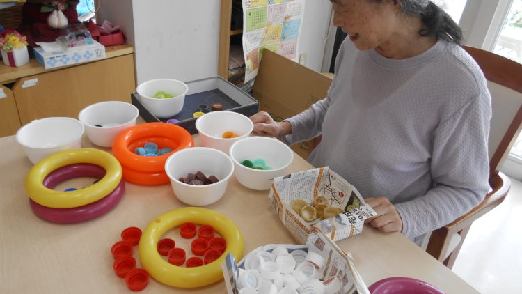 本日は、たまったペットボトルのキャップを仕分けしていただきました。