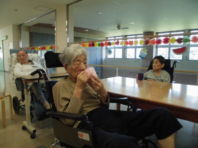 本日も皆様には沢山水分を摂っていただき、熱中症対策を行っております。