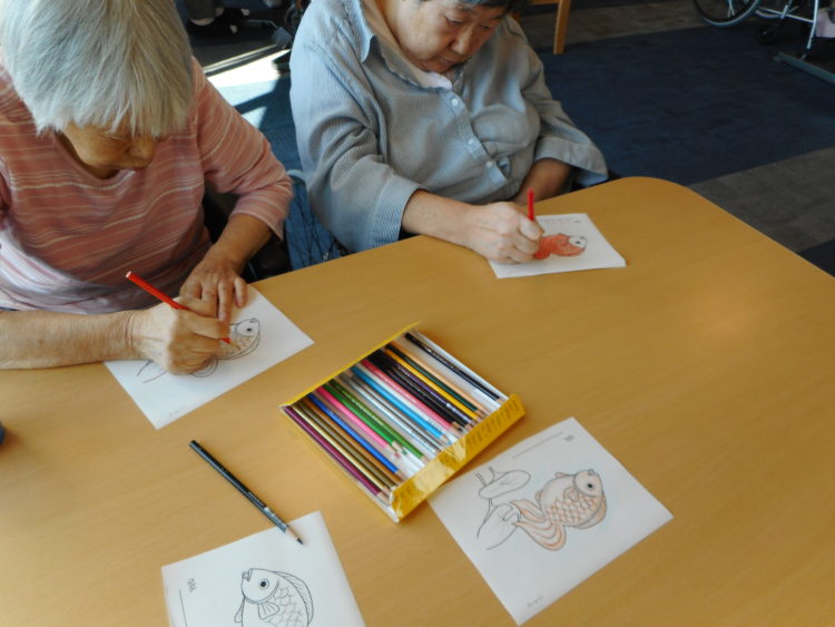 涼し~い室内で、真剣な様子で塗り絵を行われているM様とS様♪