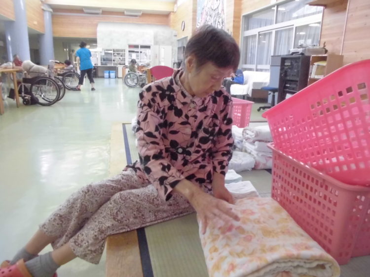 今日は、いつも職員が畳んでいるタオルなどを、S様が手伝ってくださいました。
