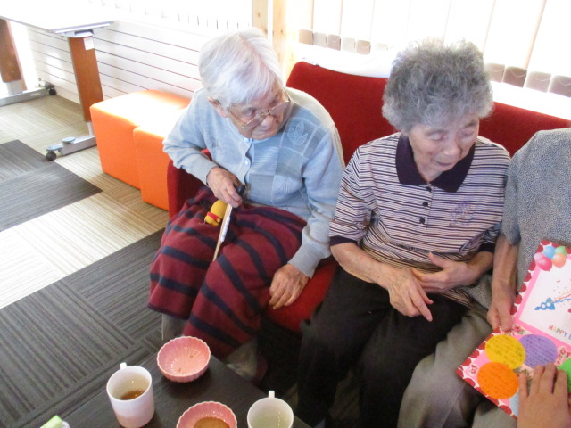 職員で作った、「誕生日カード」を渡し、とても喜んで頂きました♪