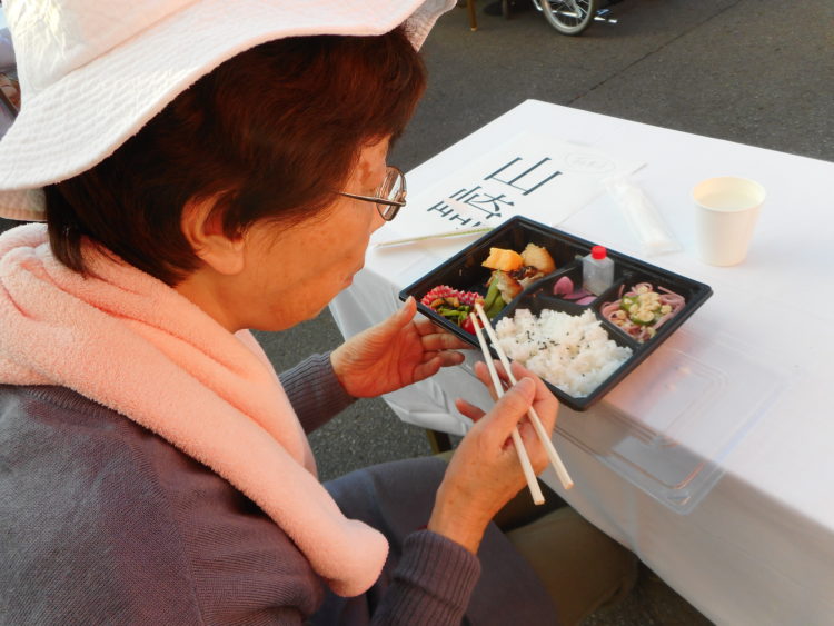 挨拶を終え、夕食を召し上がってもらいました。いつもとは違うお弁当に「これ、美味しいね!」と話しながら召し上がっていました。