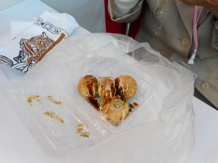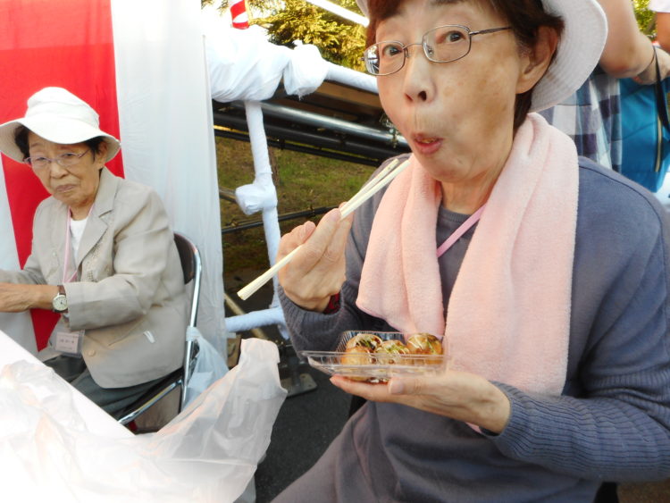 食事を終え、出店の焼き鳥やたこ焼き等も召し上がってもらいました。何が食べたいか伺うと「せっかくだから色んなの食べたい」と話すN様。