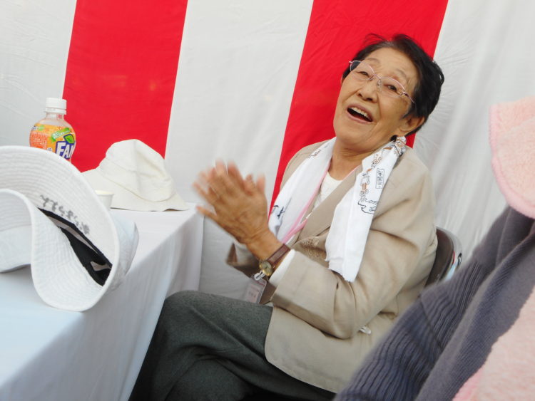 T様も黒石よされを座りながら踊られていました。せっかくなので、一緒に踊りましょうと声を掛けるも「足の調子よくないからまいね」とのことで、座りながらの参加となりました。見事な手さばきでした!