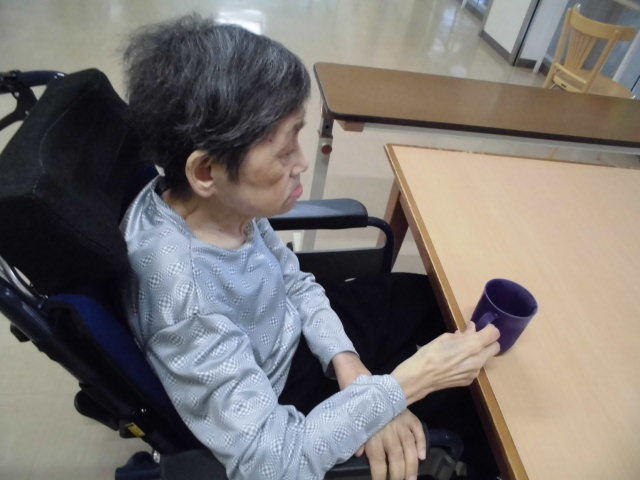 今日に限らず毎日に欠かせないのが水分です。ある程度とらないと脱水になる可能性があるので気をつけよう。M様も毎日ちゃんと飲んでがんばってます。頬がぷっくりとしているのがなんともかわいらしい感じが見受けられます。皆さんも水分補給をこまめに摂りましょう。