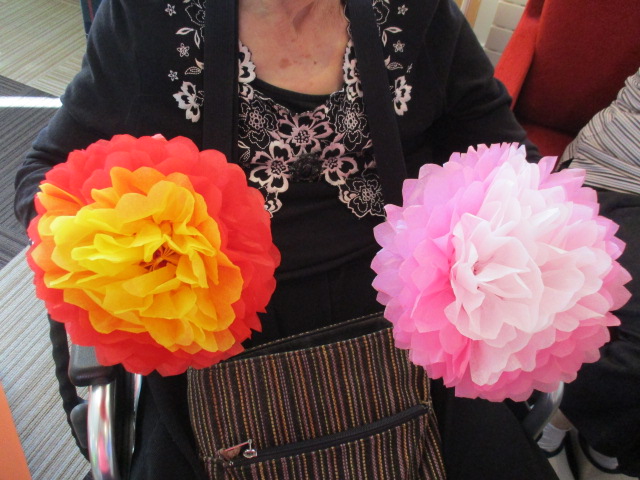 出来上がり♪お花紙で作りましたが「本当に咲いてる花っこみたいだ!」とビックリされ初めて見たと話される方も。キレイだ~^0^と喜んでいただけて良かったです♪♪これからも色々作っていきましょう☆