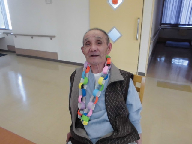 今日は、折り紙で、ネックレスを作りました。丸い輪をつくり、一生懸命につなげていきました。一人の方が頑張っていますと、他の方も負けずに頑張っていました。これからも折り紙で色々なものを作りましょうね。 ショートステイ(M:Y)
