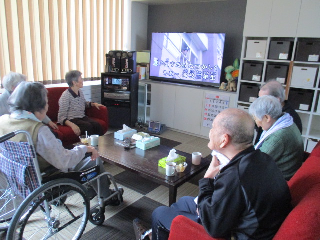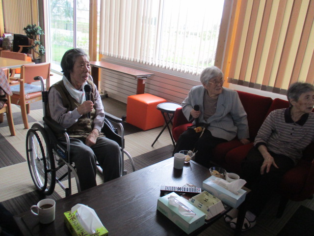 外のどんよりとした天気と台風を、吹き飛ばそうと今日もカラオケを行いました。今日は、童謡をうたいました。