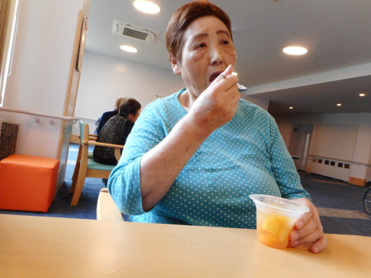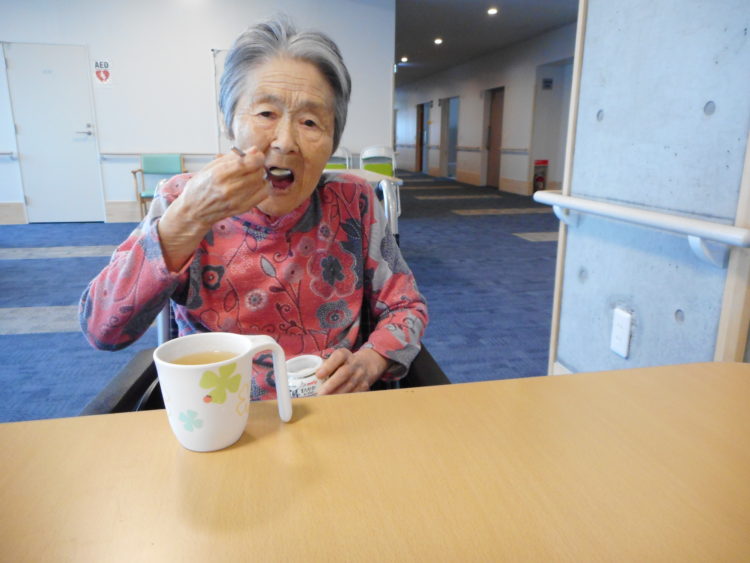 とても美味しそうに食べていますね。毎日どんなおやつが出るか楽しみです。
