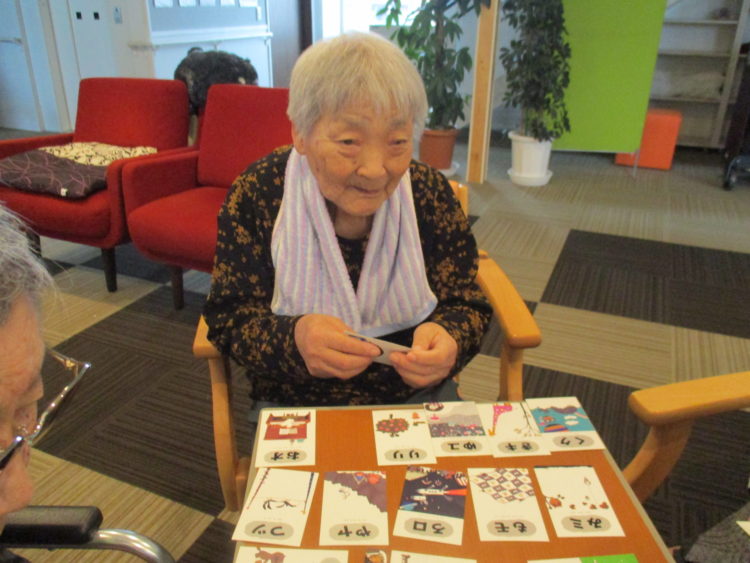 お題の歌留多を見つけては、他の利用者様に採られないように素早く手にしておら