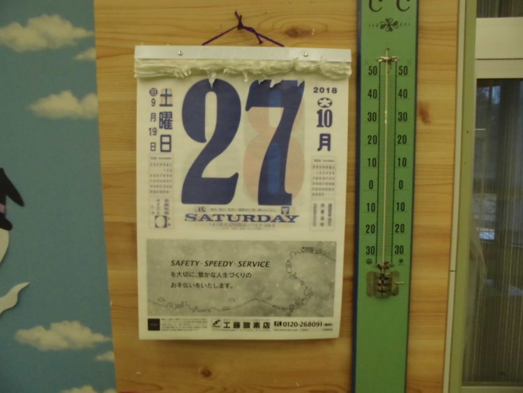 さて、唐突ではありますが特養のホールには日めくりカレンダーがあります。