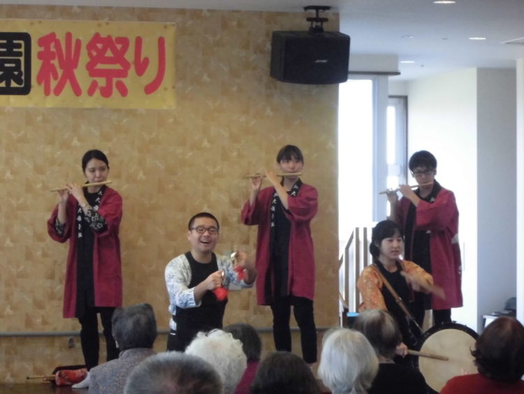 開始の挨拶の後は、弘前大学の方々で囃子の発表。笛や太鼓のリズムに合わせ、手拍子をとり会場全員が盛り上がりました。
